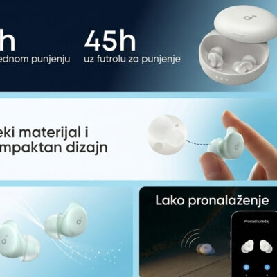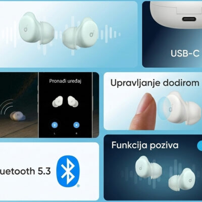 | Podržane tehnologije | True Wireless Stereo (TWS), ANC (Active Noise Cancelling), IPX4 otpornost na vlagu, Noise cancellation, Adaptivno poništavanje buke, AAC, Bluetooth, Active listening, Find My podrška |