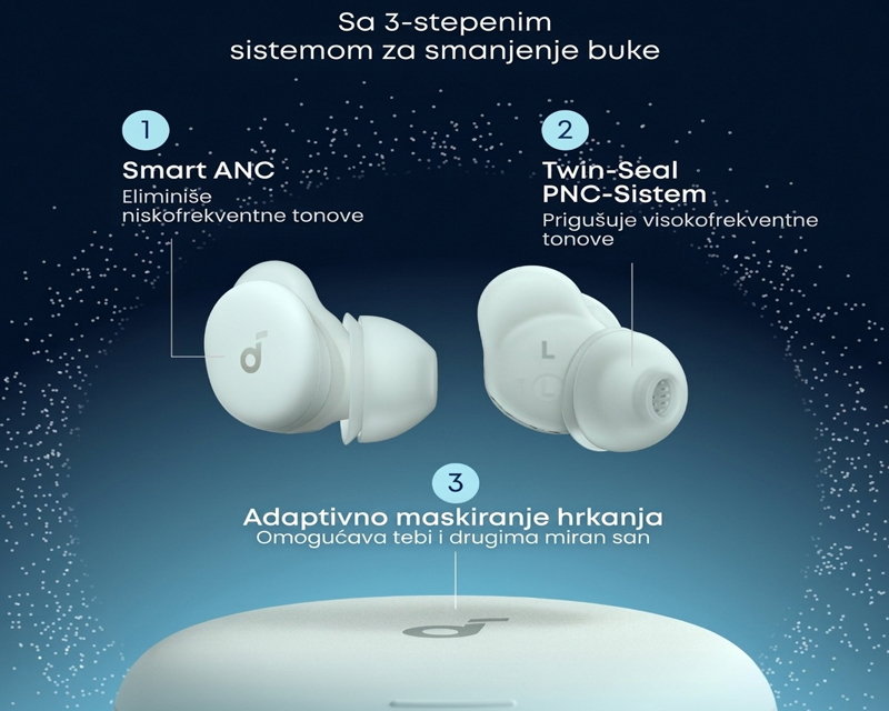 | Podržane tehnologije | Noise-cancelling, Active Noise Cancellation, Višestruki mikrofoni sa naprednim uklanjanjem buke i poboljšanim kvalitetom poziva, Mikrofon za detekciju hrkanja u kućištu |