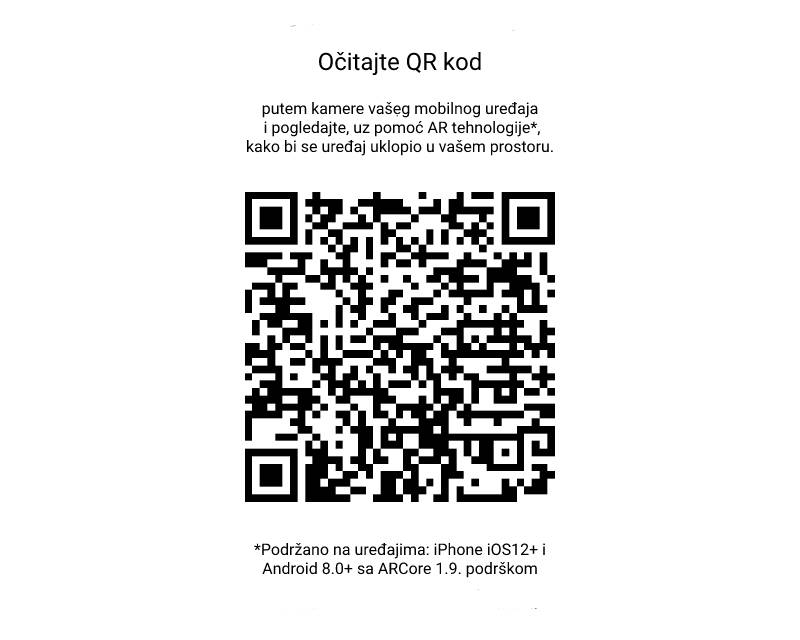 Slike uređaja u enterijeru služe isključivo kao ilustracija mogućeg uklapanja proizvoda u prostor. Proizvod se isporučuje samostalno, bez prikazanih kuhinjskih elemenata, dekoracije i ostalih delova enterijera.