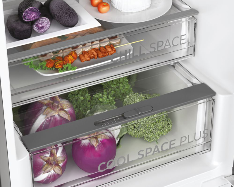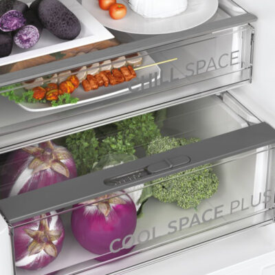 Dodatne funkcije | Digitalno podešavanje temperature, LED svetlo, Mod rada za vreme godišnjeg odmora, Cool Space XL – fioka za voće i povrće sa kontrolom svežine, Chill Space – izolovana fioka, idealna za sir i suhomesnato, Displej na vratima |